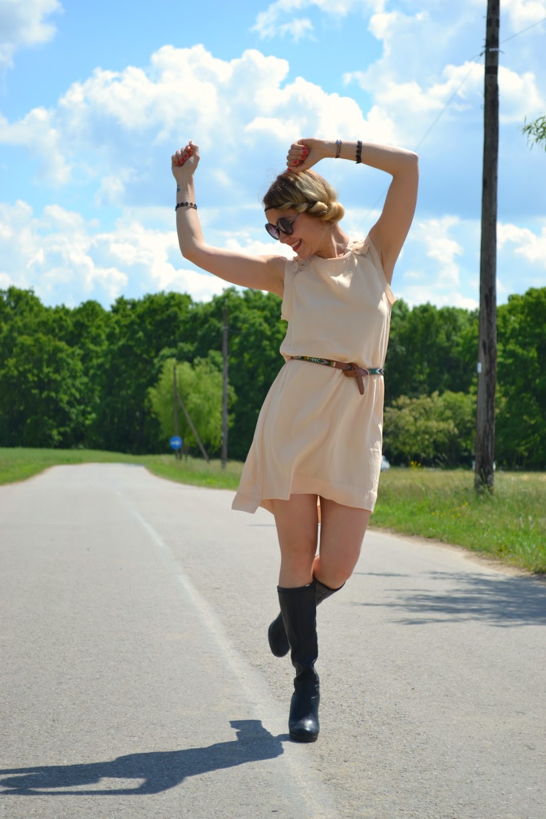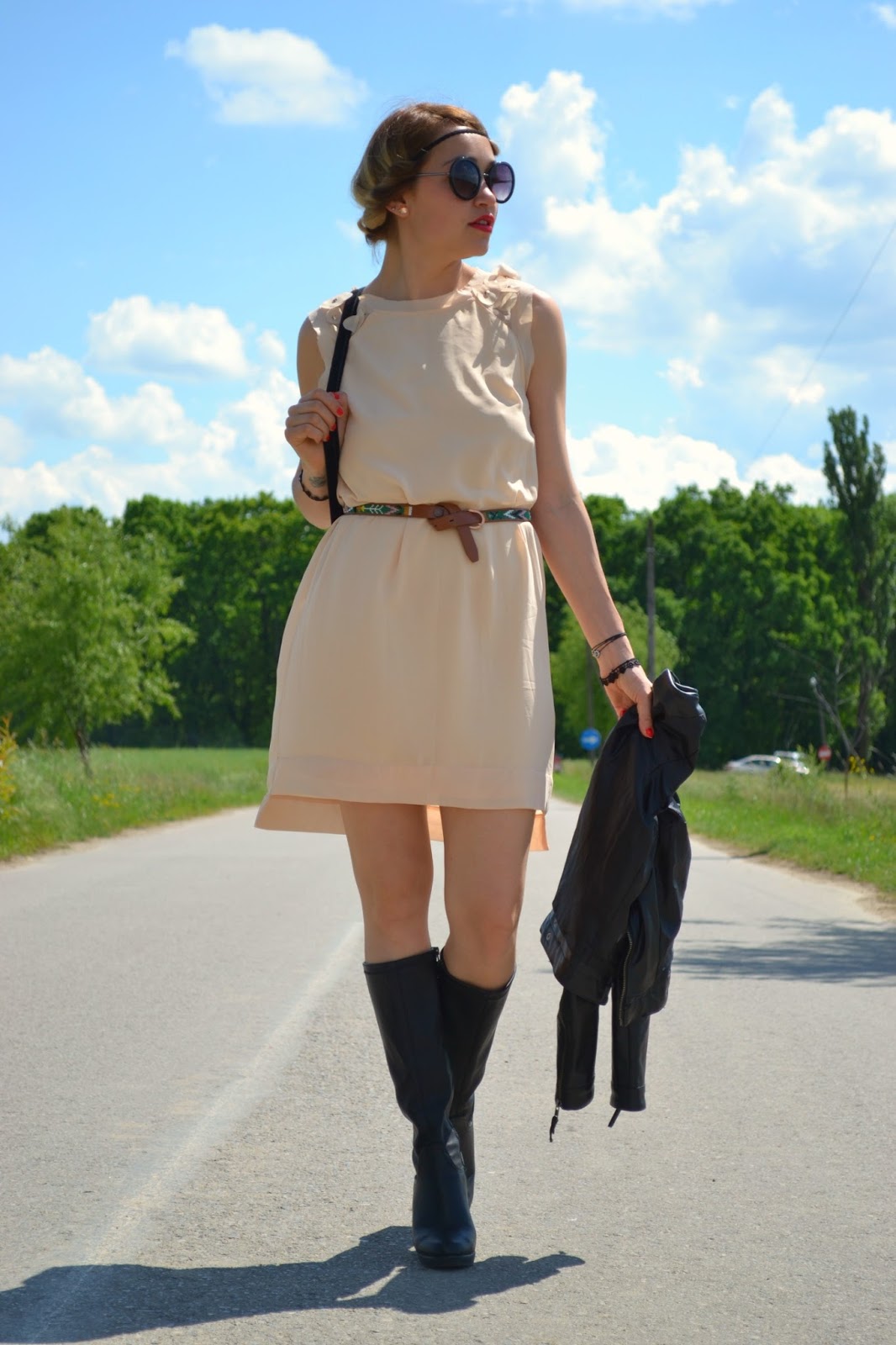 I was wearing Choies jacket, Meli Melo sunglasses, Deichmann boots, handmade leather bag, Mango dress and no name awesome belt
